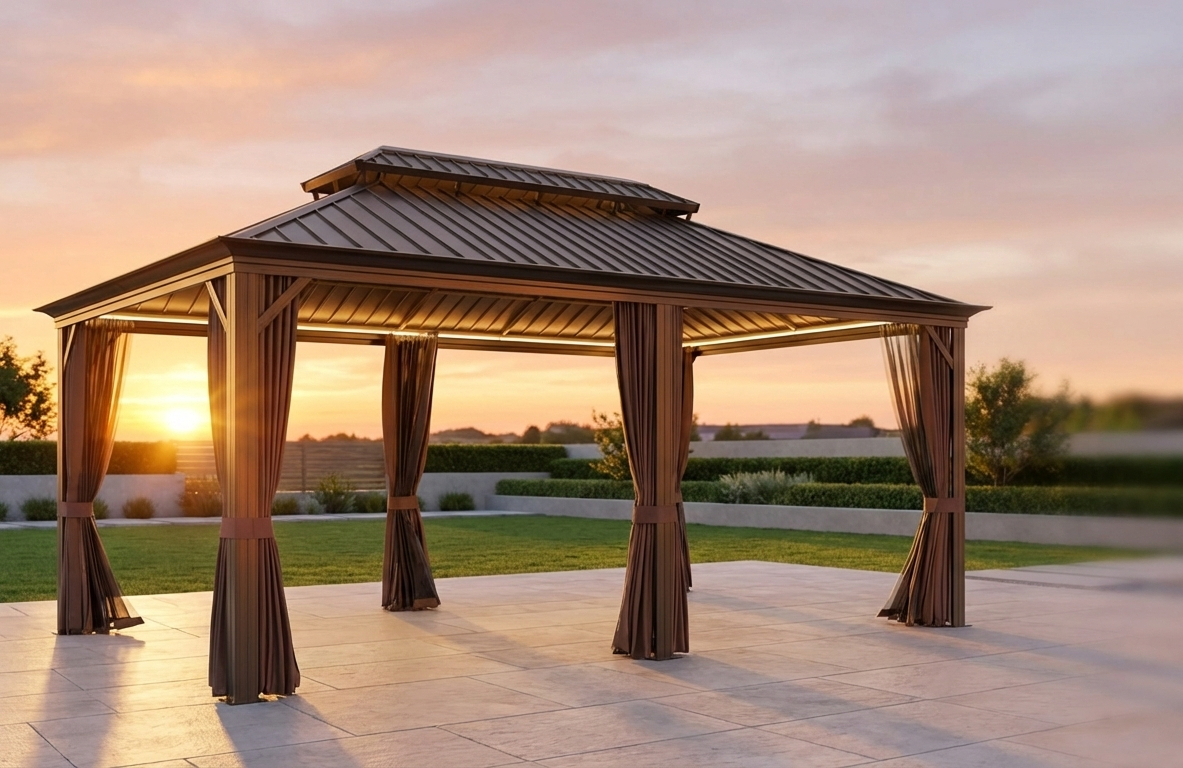 Transform your backyard into a refined nighttime retreat. Designed for elegance and built for durability, this premium gazebo creates the perfect setting for evening gatherings, quiet moments, and unforgettable outdoor experiences.