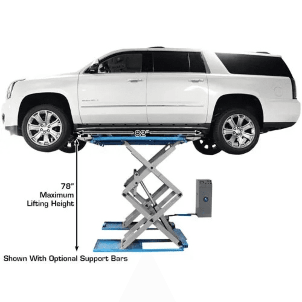 The Atlas APEX8-EXT is an ALI Certified four-post lift designed for homeowners and restoration shops. It is an extended version of the popular Atlas Garage