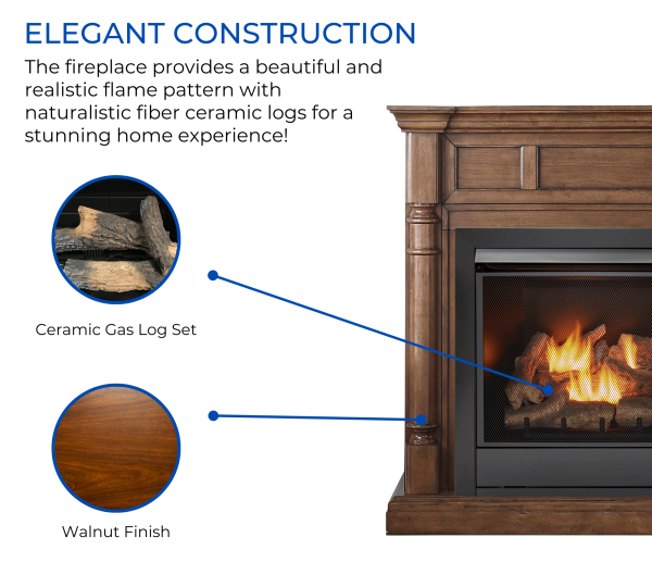 Duluth Forge Full Size Dual Fuel Ventless Gas Fireplace With Mantel – 32,000 BTU, Remote Control, Walnut Finish – Model# FDI32R-M-WN