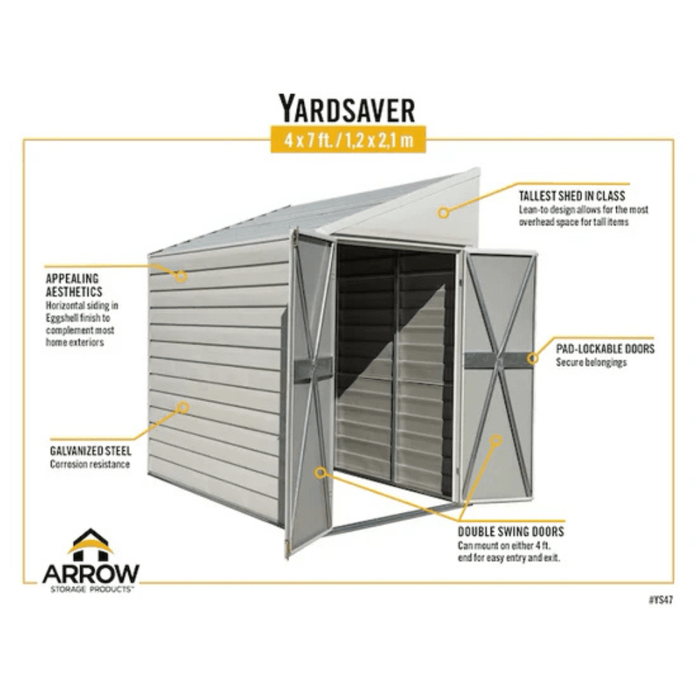 Arrow 4 ft. x 7 ft. Yardsaver Galvanized Steel Storage Shed