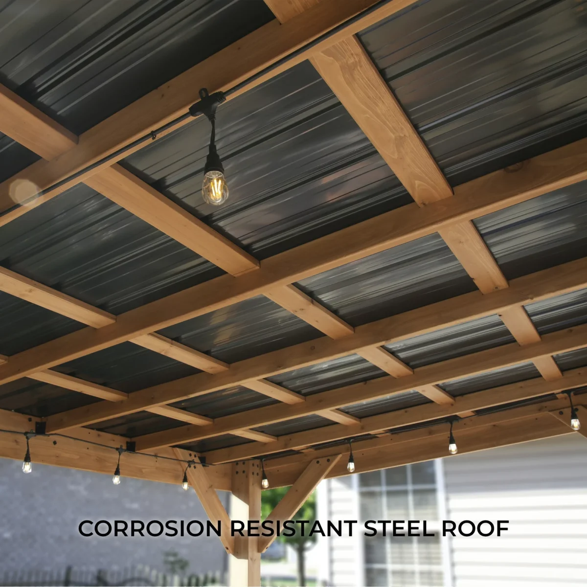 • Heavy Duty Roof: 29-gauge black steel roof offers dent and corrosion resistance.