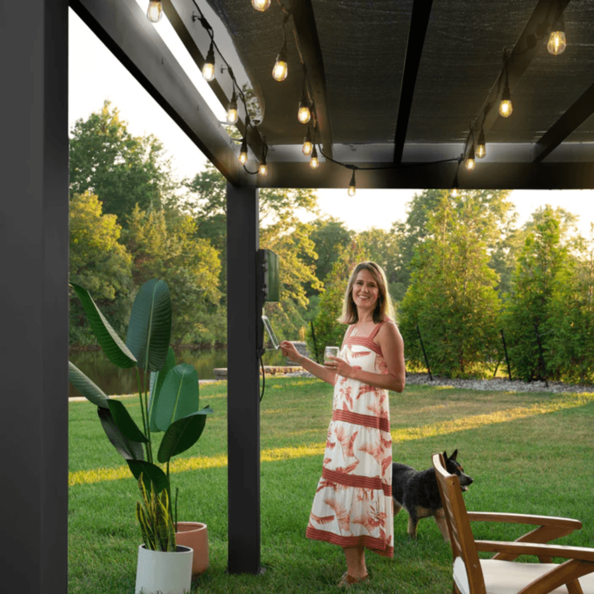 Featuring a sleek modern black finish, an integrated PowerPort™, and a breathable UV-protected soft shade sail canopy, it offers a perfect blend of durability, elegance, and year-round usability.