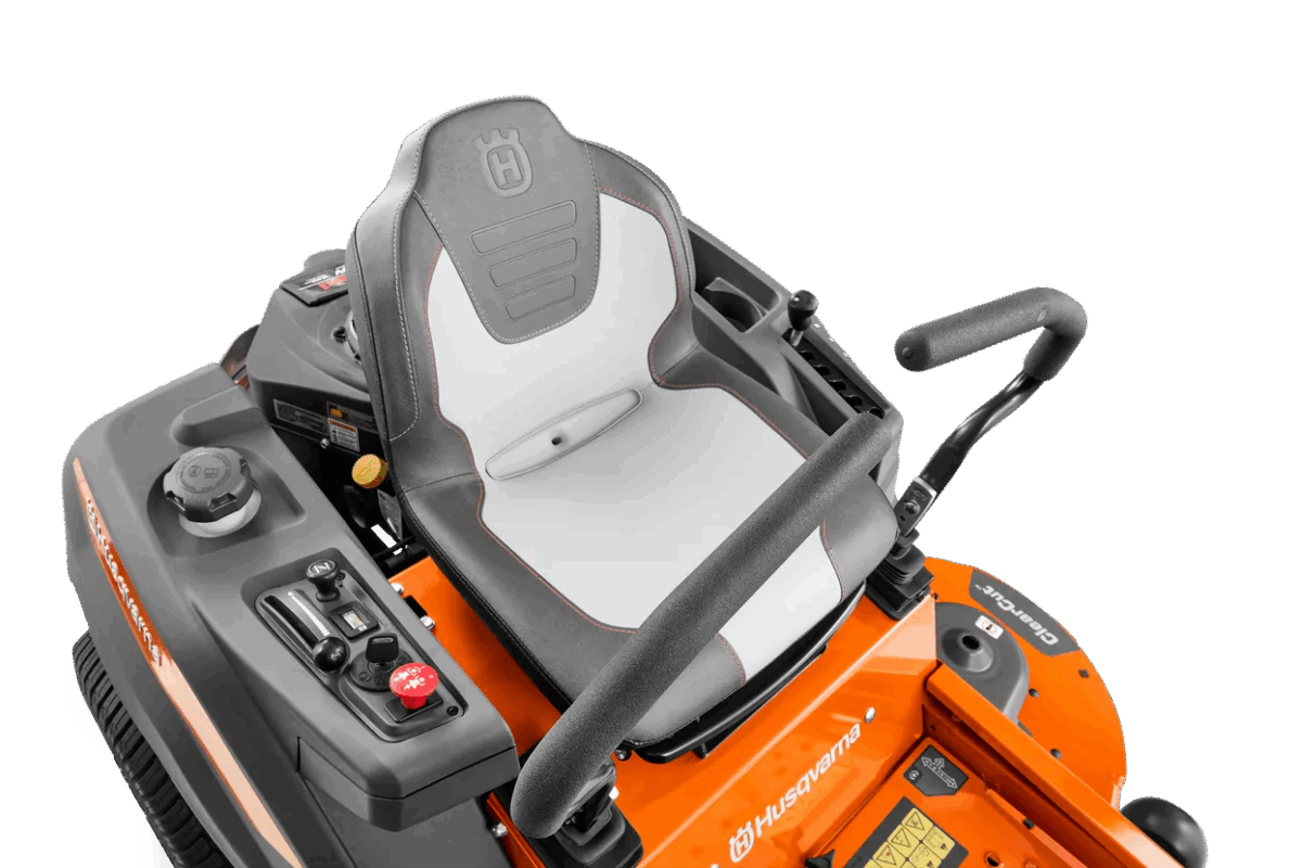 • Seat back height: Designed for comfort, the mower includes a cushioned seat that adjusts front to back for added support.