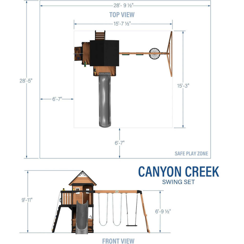 Give your children the gift of outdoor fun, creativity, and adventure with the Canyon Creek All Cedar Swing Set Playset—a place where memories are made, friendships grow, and imaginations soar!