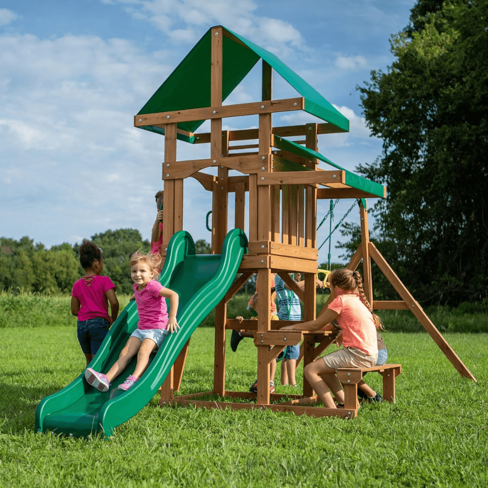 Give your children the gift of outdoor fun, creativity, and adventure with the Canyon Creek All Cedar Swing Set Playset—a place where memories are made, friendships grow, and imaginations soar!