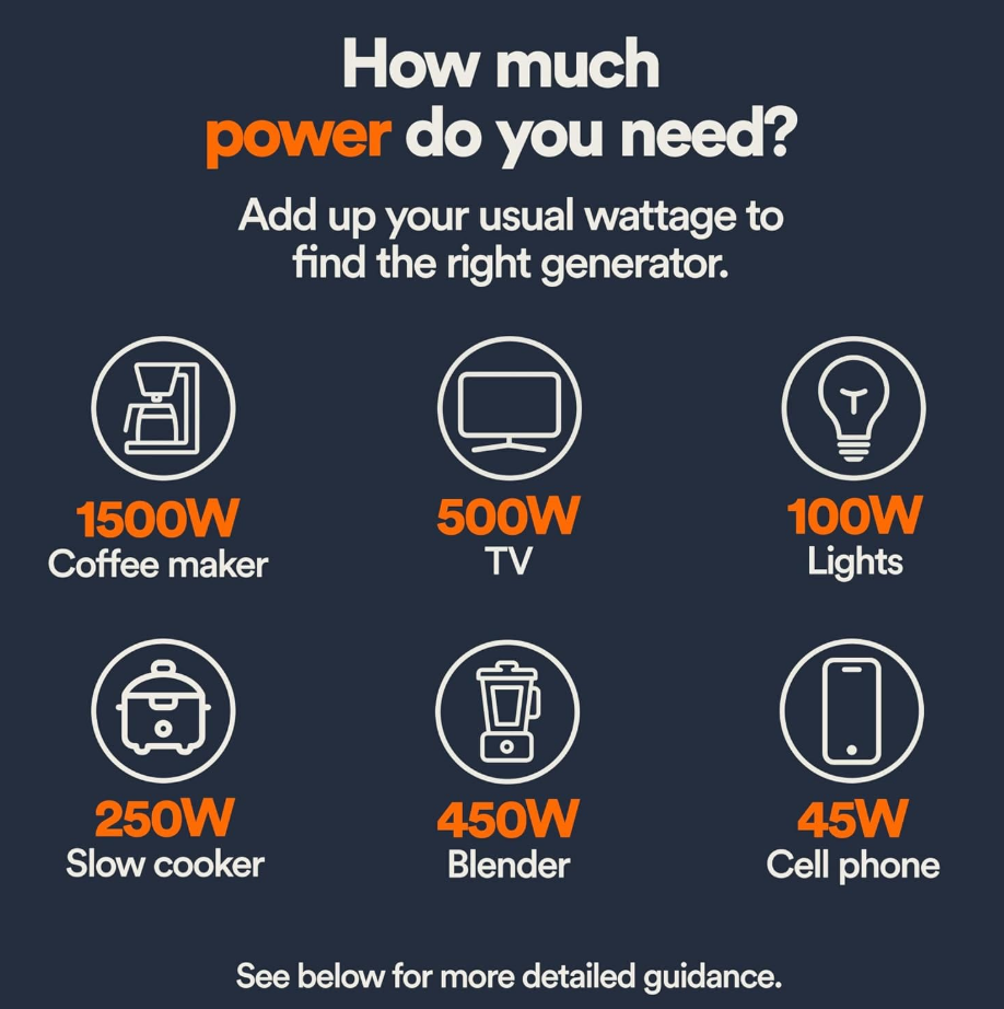 Delivers from 200W (starting wattage) to 2,500W of continuous power, making it ideal for powering sensitive electronics, essential home appliances, and outdoor equipment.
