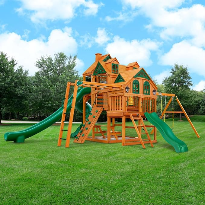 Be the first to review “Gorilla Playsets Empire Extreme Wooden Swing Set with Monkey Bars, Clatter Bridge, Tower, and 3 Slides” Cancel reply