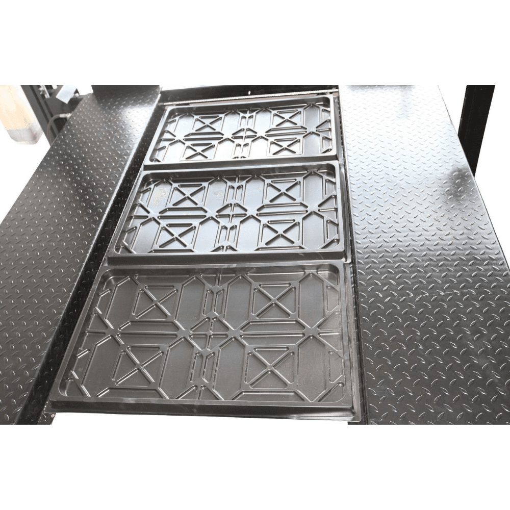 Set of 3 drip trays to prevent fluid leaks onto lower vehicles.