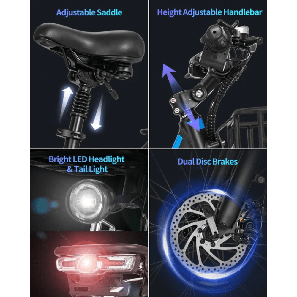 - Smart LED Display: Stay informed on your journey with a multi-function display that shows speed, battery level, mileage, and more.