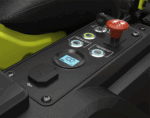 The advanced control panel provides easy access to essential functions, including blade activation, slow speed mode, LED headlights, and a battery level display. The rear charging port ensures effortless recharging with a standard 120V outlet, making it simple to power up and get back to work.
