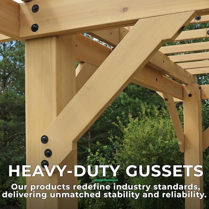 Cedar has many advantages for use in outdoor structures like this Pergola. It doesn’t swell, warp or decay, is naturally insect-resistant, and is naturally beautiful. It’s constructed out of 100 percent premium exterior grade cedar, then covered in an environmentally friendly natural cedar-color stain that beautifies the wood and extends its life. All wood sections are pre-cut and pre-drilled for easier assembly. The Pergola comes with simple-to-follow illustrated instructions, and we’ve created a helpful hints video to make your installation process more manageable. Yardistry stands by the quality of its products